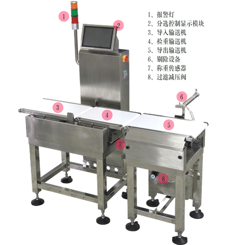 檢重秤還可以按不同的重量區(qū)間和等級(jí)將產(chǎn)品進(jìn)行分級(jí)。