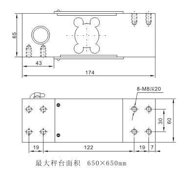用途與特點(diǎn) 最大秤臺平面650×650mm 經(jīng)四角誤差修正,保證在額定受載平面內(nèi)各點(diǎn)輸出一致。 適用于固體、液體流動秤、人體秤、配料秤、案秤及精細(xì)化工配比秤。 量程、規(guī)格、外形及安裝尺寸: 200,300,500,700,1000kg
